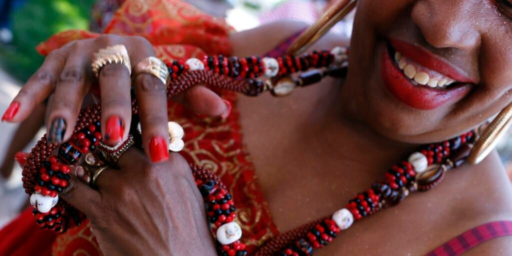 “Já começou ali pelo primeiro ano do ensino médio, quando, por exemplo, a gente estava fazendo um trabalho de danças populares, eu resolvi fazer menção de Oxóssi, algo simples, em que a gente só fizesse a simbologia da flecha, eu fui repreendida dizendo que não poderiam envolver religião de uma tesa africana num trabalho letivo […]
